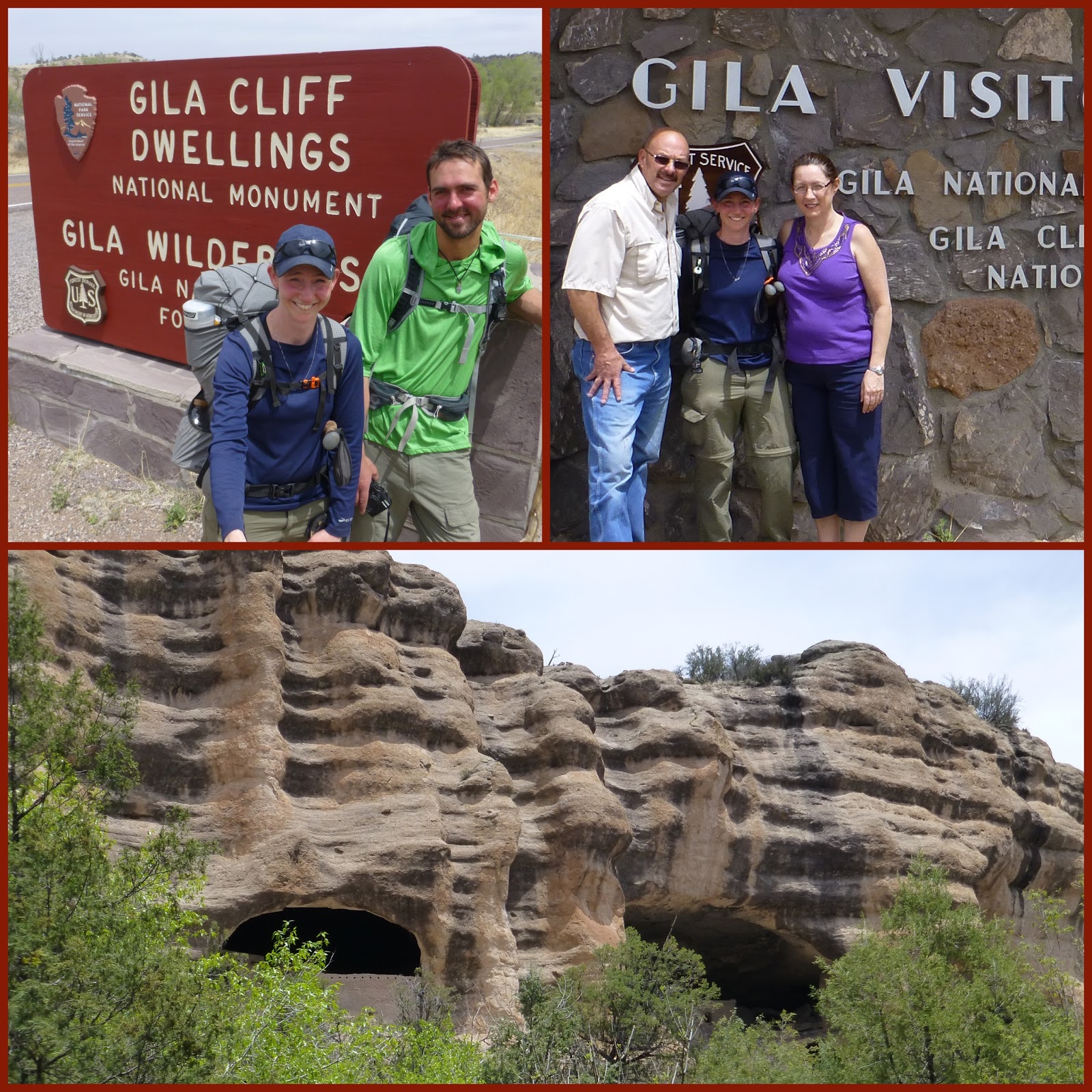 On our way out, we met Bigfoot and Soul to Soul who started the CDT from the Columbus route, which is the other route that is less remote and more accessible than Crazy Cook where Sam dropped us off. We also saw Mark and another hiker named Sunday as they arrived a Doc’s. The four mile road walk lead me and Sweetfish to a popular side trip to a national monument called the Gila Cliff Dwellings. The actual dwellings are a four mile round trip side trip from the trail. When we reached the visitor’s center, we saw Peru and Radar. They had decided to take a slightly different route that walked by the Cliff Dwellings and was a bit shorter than the one Sweetfish and I planned to take. The CDT has many options and the one we were going to take is called the Middle Fork of the Gila and is said to be longer with many Gila crossings, but is popular because it goes through some of the most beautiful parts of the Gila. The two trails reunite about 6mi in, so we figured we’d see them later. I introduced myself to a couple that were driving to the dwellings and they were kind enough to give me and Sweetfish a ride to the dwellings and back. Technically my first hitch of the hike even though I didn’t have to stick my thumb out. Thank you to Brian and Sharon for the ride! Here are pictures of them and Sweetfish.