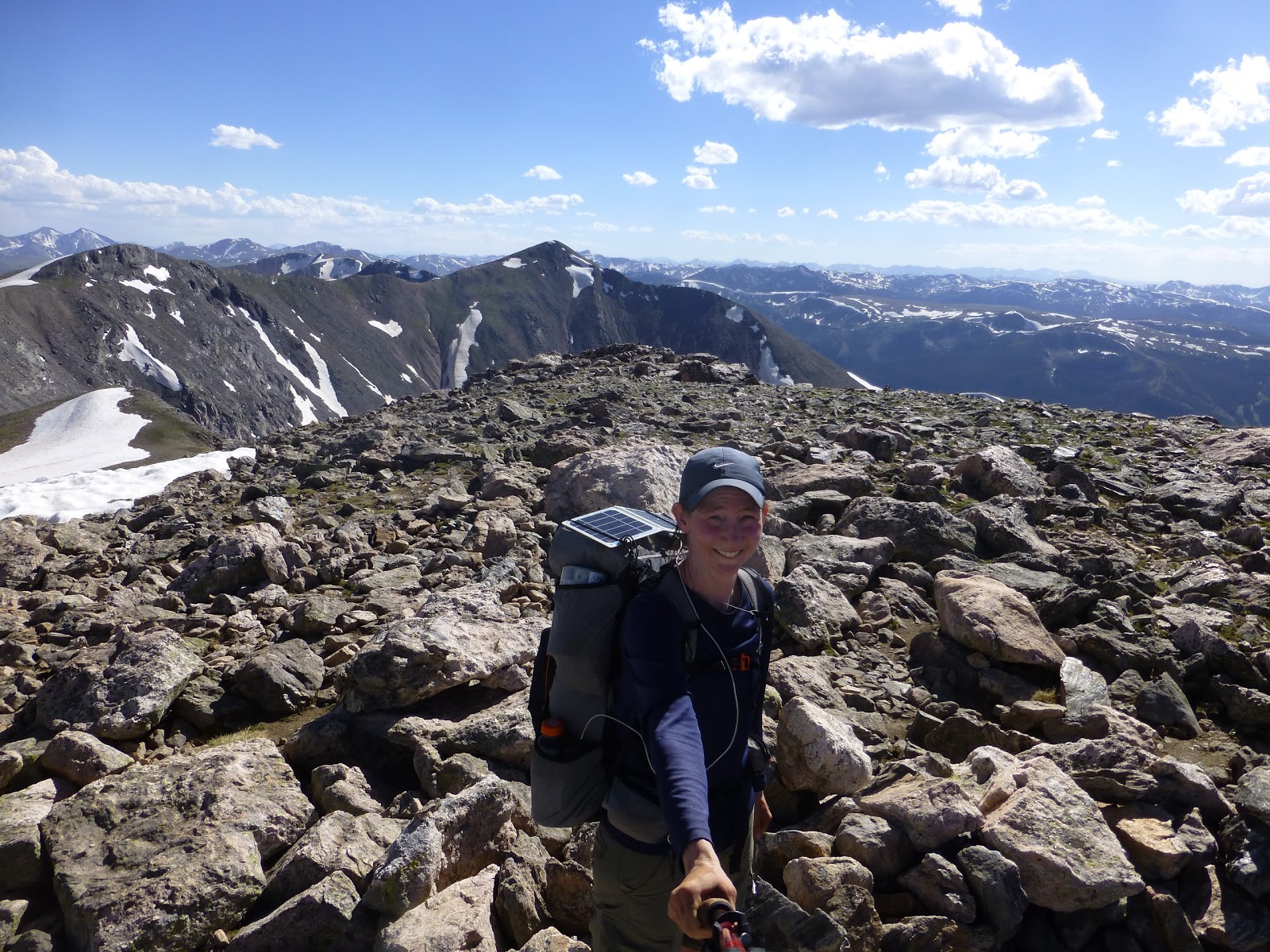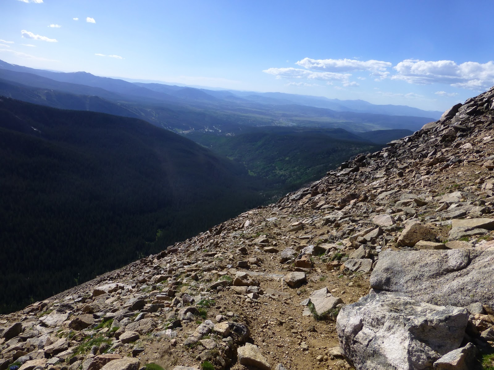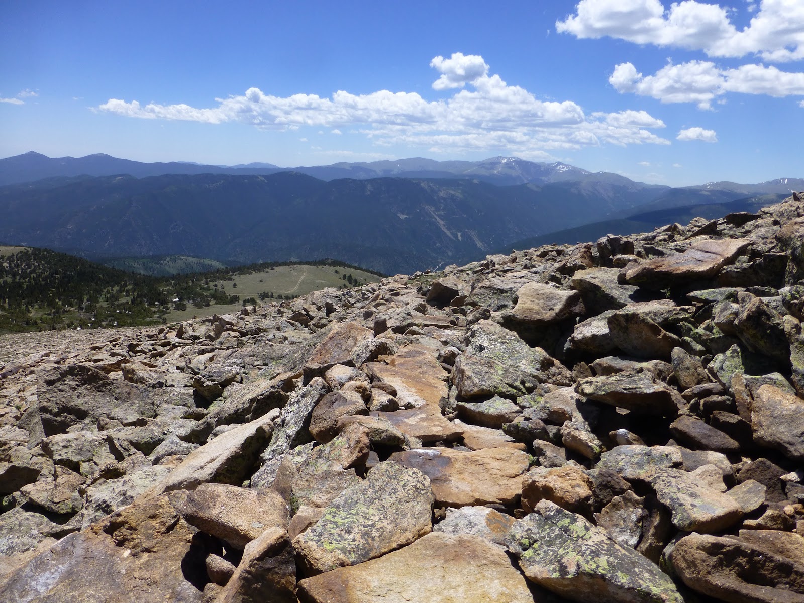 On the final big climb in the afternoon, I topped out at 13,308ft at the top of James Peak and got a StickPic photo. Notice all the rocks.