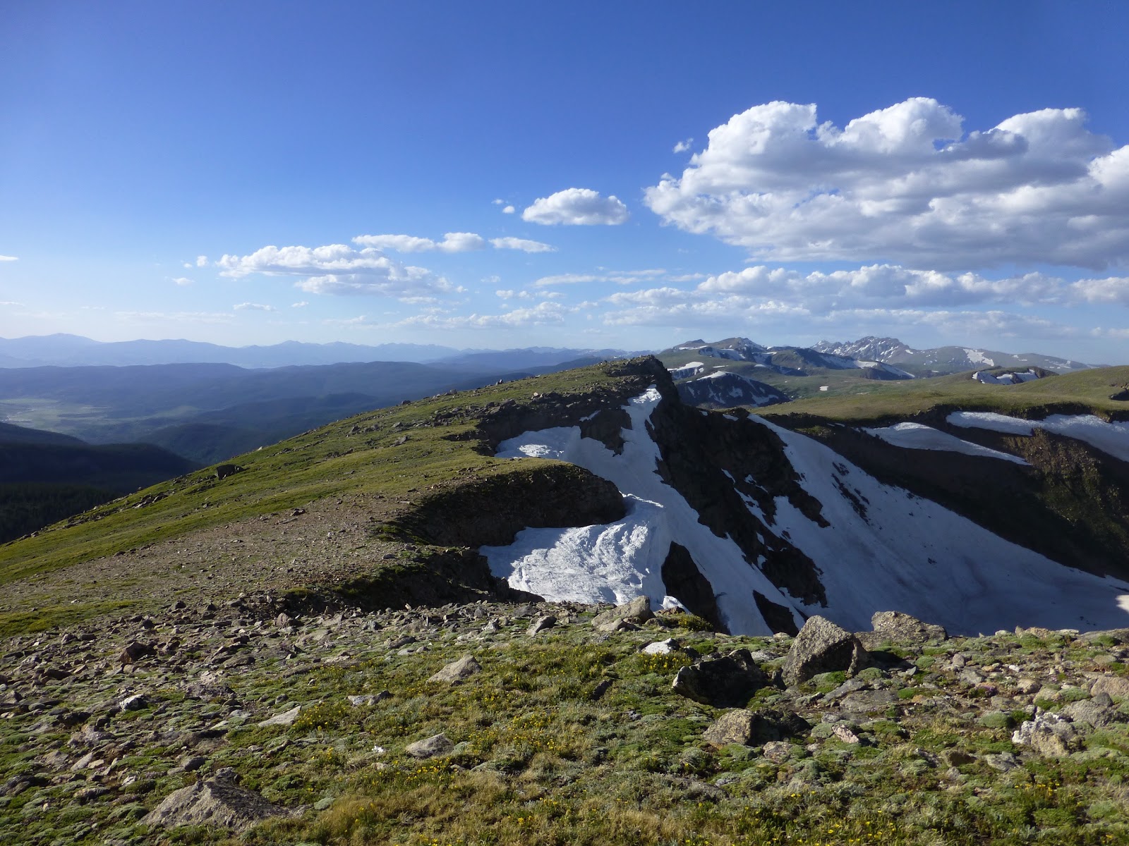 It was another great morning! It was warm enough overnight that I didn’t have to sleep in my down jacket or beanie and I didn’t need to zip my sleeping bag. We heard it’s in the 100s and 90s in towns around here and that is making 12,000ft feel just right for hiking where it isn’t freezing in the morning or night and warm enough for a t-shirt and shorts during the day. We started hiking at 6:15am this morning as it’s easier to get going when it’s warmer in the morning. Track and Field left at the same time and we immediately started with a 1,000ft climb to the top of Stanley Mtn. Track and Field have strides twice as long as me and Mtn Rat and I didn’t see them again try rest of the day. When we got to the top, reception was the best it’s been all trail! Mtn Rat called his wife and I answered some emails, but still couldn’t post blogs. I really am loving that I get reception more regularly now. I know it seems to be the opposite of my purpose out here, but it really make me happy and that’s why I’m Wired. It was really getting to me during the last half of Colorado and I’d have a lot piled up to do in town. Now I’m not falling behind so much. Anyway, we hiked on and went down 1,000ft to Berthoud Pass. This is US 40 and some hikers choose to hitch to a choice of Fraser or Winter Park to resupply. I think the crew is doing this. Mtn Rat and I decided to push through the 5 night/6 day leg to avoid the time and hassle of hitching and going to another town. We were delayering when a hiker exited the trail. Neither of us knew who he was, as he came from a distance straight to us and that is unusual, because there aren’t many of us out here and we tend to know where everyone is. The hiker walked up and said, “Hi Wired.” I really had no idea who it was and had to ask. It was Softwalker! We both did the PCT in 2011 and rode in a van together to the border. He is even in the group start photo I have with about 15 people at the border. In the brief time we overlapped, I found out he’s from Illinois too and right near where I went to college. After that, I never saw him again, but we both knew who each other were and that we finished the trail that year. He looked so different with a beard and hat that I didn’t recognize him at all! He hitched into town and we should end up in Grand Lake the same day. Such a small hiker world!