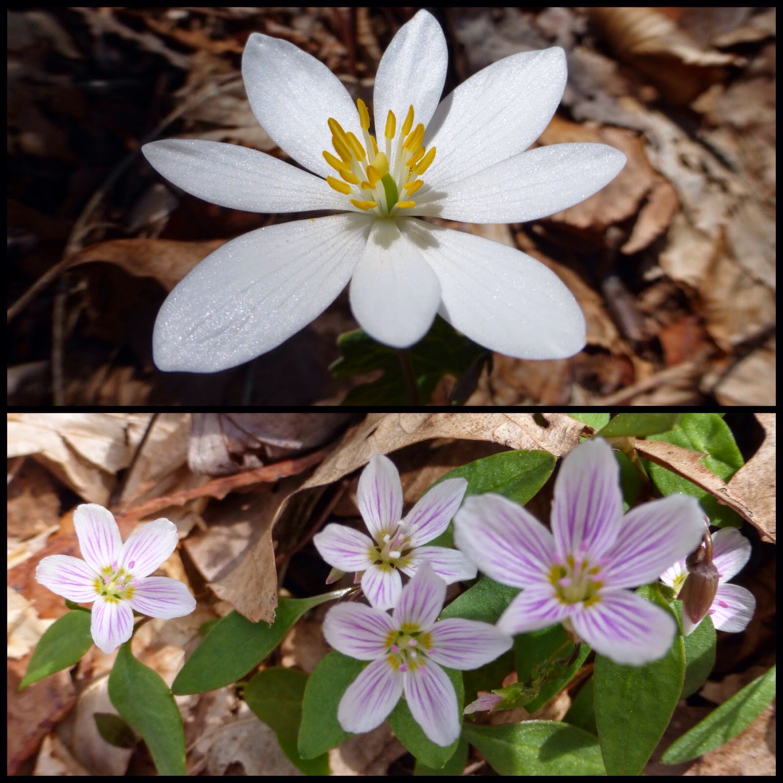 Today was the first day I felt like spring was in the air. There were birds chirping the first few hours and less as the day went on and elevation went higher. Temps were near 70 and it was the first day I’ve really sweat. It was also the first day I’ve felt like flowers have been in abundance. I’m trying to remember what I was told, but I think these are Spring Beauty and Bloodroot.
