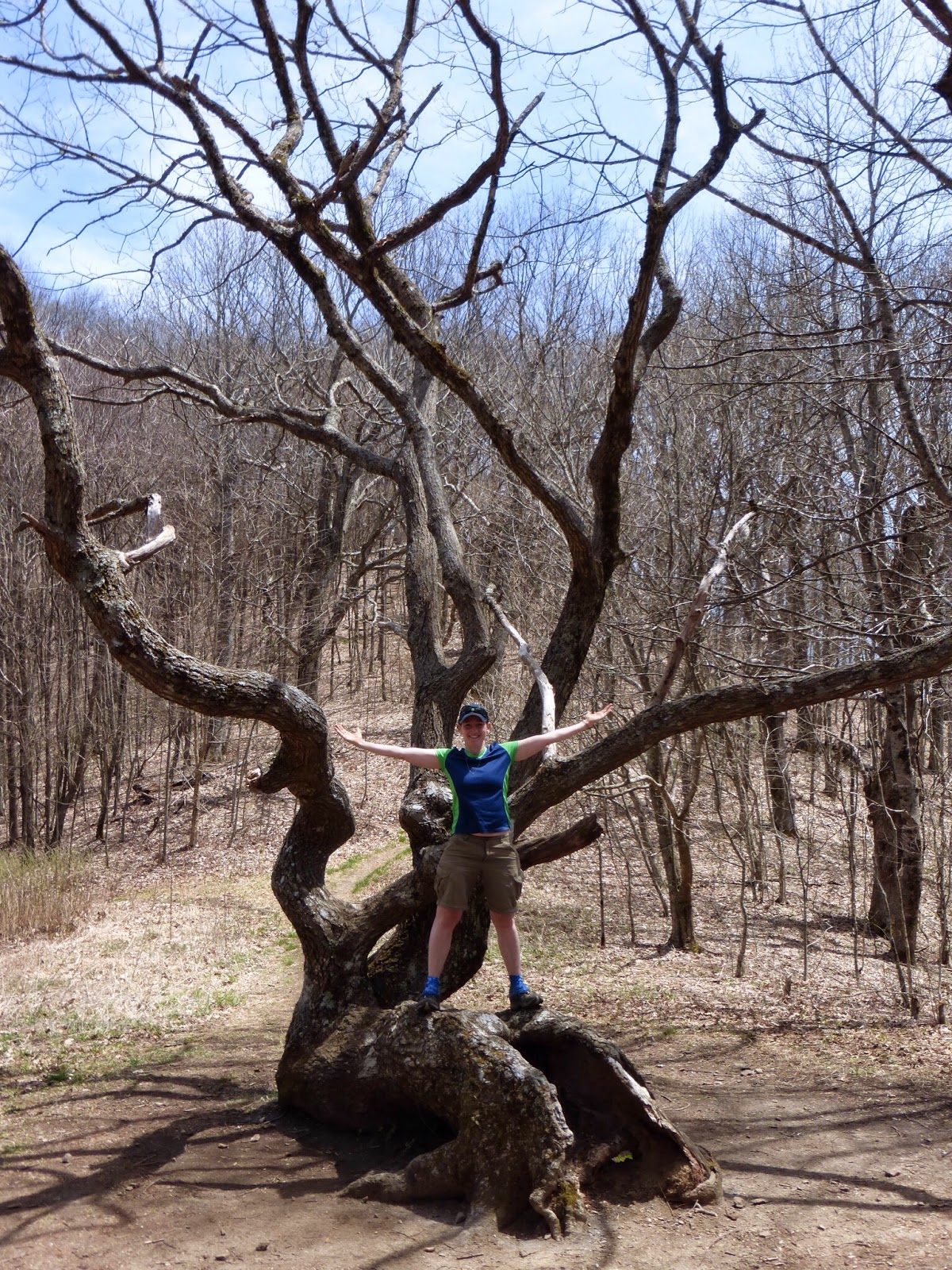 Then right after the border was this tree that we had all heard about that stands out uniquely among all others along the trail and hikers take photos with. It is right in the middle of the trail!