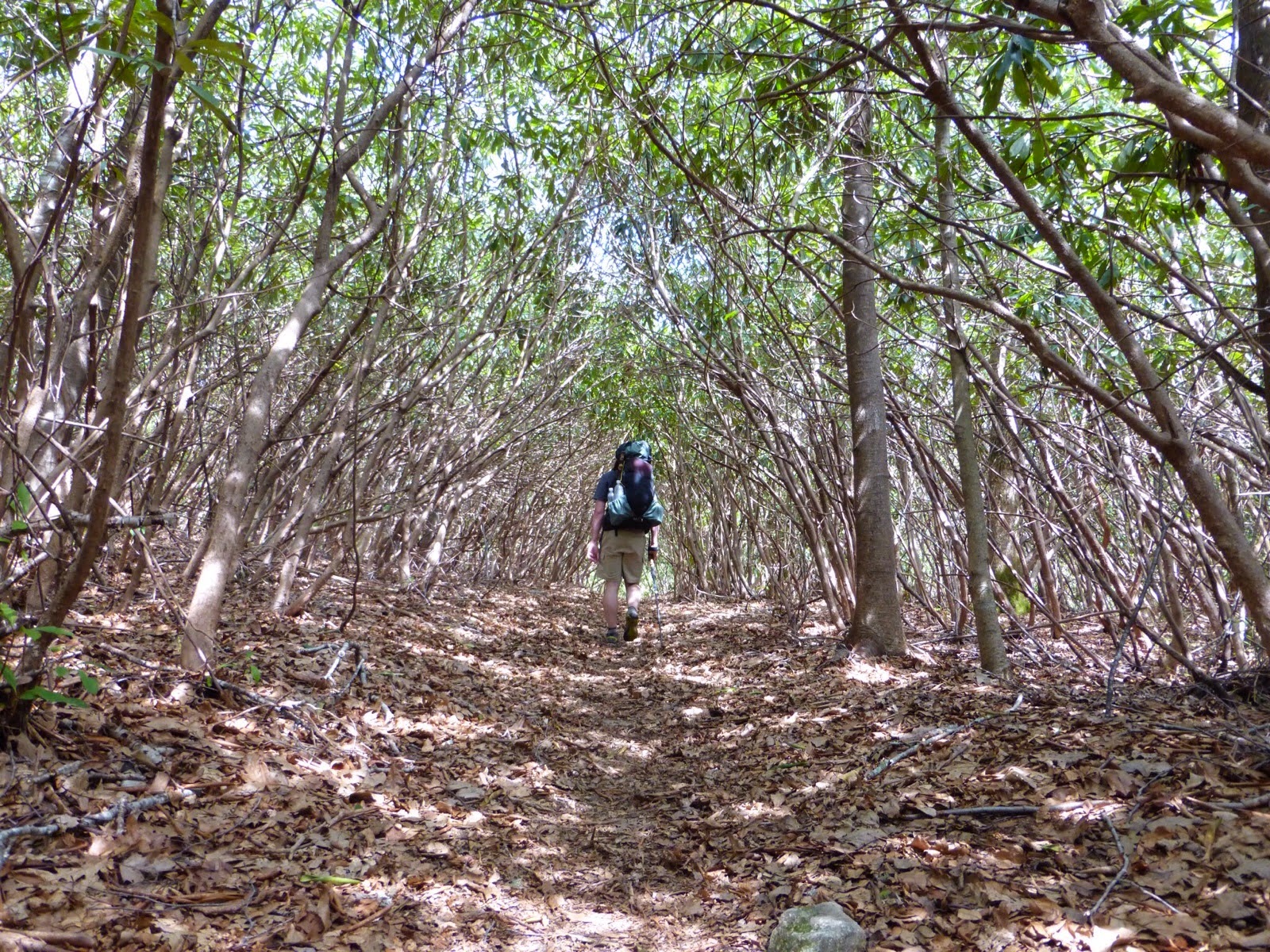 Towards the end of the day, Double T knew he was stopping at a shelter to wait for Hob and we separated. I put on my headphones and cruised to the highest point yet, the top of Standing Indian Mtn at 5,498′. It was a bit hazy, but a nice view.