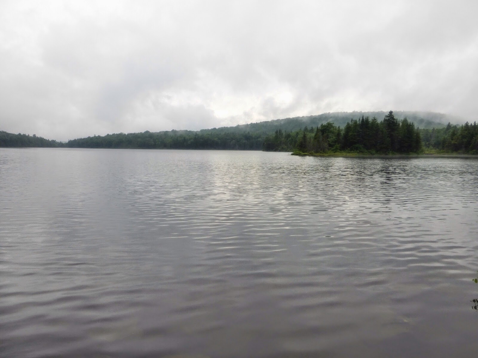 Then there was a nice downhill cruise for awhile. I ran into some section hikers who actually camped up on Stratton just as the storm came in. That had to be intense! We overlapped for a bit and I was really hungry, so I decided to make a morning pit stop at a shelter to eat somewhere dry. It was about 9am and there were still four hikers in the shelter (one was a thru hiker). That’s how yucky it was out there as most are out by 8am. After I ate, it finally stopped raining and I ran into the section hikers again and we overlapped a bit more and came by a large pond.
