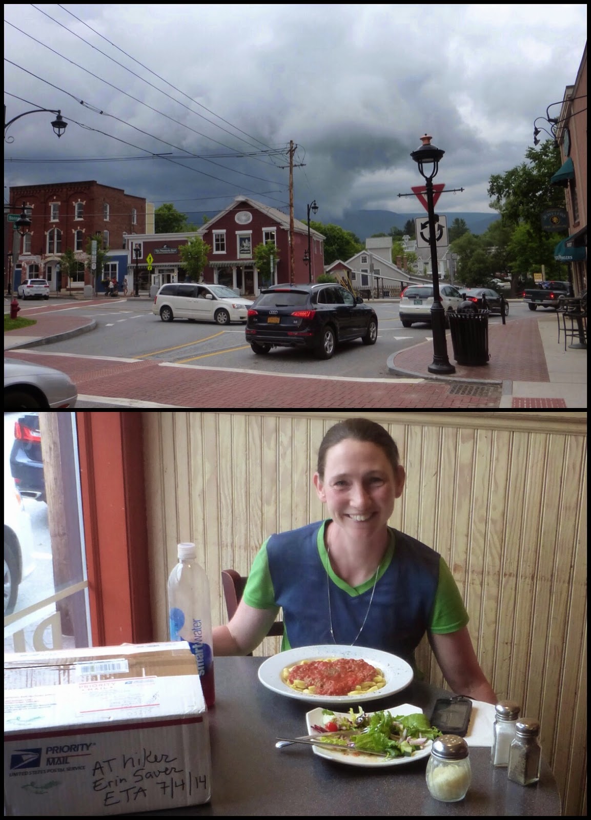 The trail came out to a very busy trail head since it was the Fourth of July and a very nice couple gave me a ride to town. Manchester Center is probably the poshest trail town I’ve been to with stores I usually see in areas I never shop in downtown cities. I heard it gets more pricey up north and they weren’t kidding. Plenty of families were out and about for the 4th and I was self conscious of my state having been without a shower in 6 days and in so much mud. I was craving some pasta with marinara sauce so I picked up my resupply box and found a good place to eat. I haven’t gotten a resupply box in a few legs due to a shipping mishap and I was really psyched to have my food again! Thanks so much to everyone who sent things on this resupply…the Ruthmans, the McGahas, Malto, Harvey & Gail, and Mom and Mark. It is a real boost to have food I like!