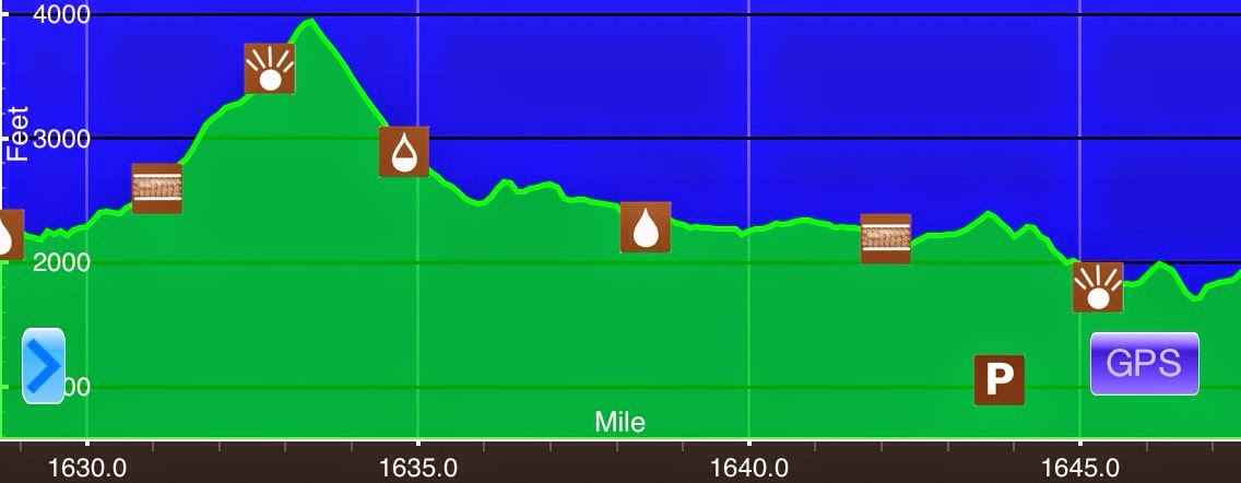 Elevation chart courtesy of Guthook’s AT Hiker app. He has apps for many trails including the PCT and CDT.