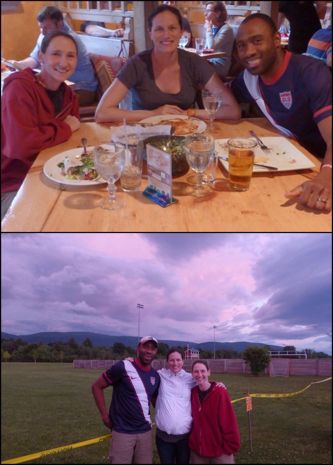 So the big event of the day is that my friends Andrea and Jeff came to visit from Boston! The original hope was that they would hike a bit for me, but they are expecting their first child in a couple months, so we settled for a town visit and fireworks! They stayed at the hostel and we were able to go to dinner and see some great fireworks in Manchester Center. It was perfectly setup that we were able to park front and center to where the fireworks were going to go off. We had the luxury of lounging in the car and then got to come out when the show started. It was fireworks in style! I can’t believe all this happened in one day and that I woke up in rain this morning. Weather looks to be clearing up so there is some light coming to the green tunnel!