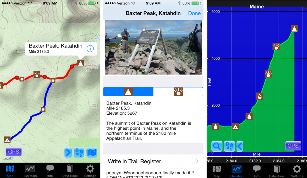 Um…Guthook’s AT Hiker App is AWESOME!!! It isn’t necessary to have this app to successfully hike the trail, but it certainly makes it a lot more enjoyable. I used this app just as much, if not more than the AT Guide. The two of them combined give you all the info you could possibly want. At the touch of a button, you can see your location on a topo map or elevation chart. There is a plethora of information as he has marked shelters, unofficial campsites, towns, water sources, viewpoints, road crossings, photos, and pretty much anything you can think of. This would not be in place of maps or a guide as it doesn’t have all the same sites and sources in the guide, but it is a great supplement and sometimes has more info not listed in the guide. I know it seems pricey, but just buy one section and you’ll be hooked! I loved seeing exactly where I was on a climb and the locations of the unofficial campsites which aren’t mentioned anywhere else. No service is required as it works off your phone’s GPS. He also has the app available for many other trails including the PCT and CDT. If you still aren’t sure, here is the link to video demos of the app in action.