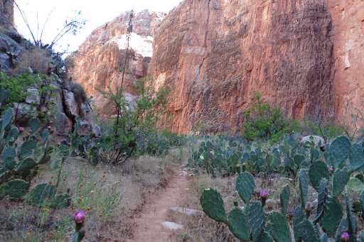 There were some nice game trails off the rocks from time to time and they were filled with what we called cactus gardens. So many and some were still in bloom with other flowers around them. I liked them.