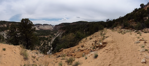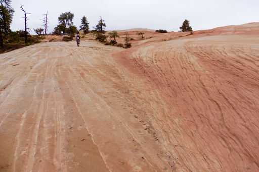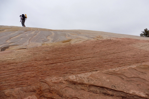 Soon after we got up Fat Man’s Misery, we were officially in Zion! I immediately loved it. 360 degree views of colorful slick rock spanned on forever. I really enjoyed the next hour or more of hiking and it was one of my favorite stretches on the Hayduke. Like most of the Hayduke, the pictures don’t do it justice. The overcast skies really helped.