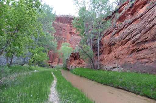 It was chilly last night and I wore my beanie and down jacket as I slept. We are getting really lucky with this cooler weather! Today, our first five miles were along the E Fork of the Virgin River, which required getting our feet wet many times to cross it as the trail crossed it. It was upper 40s when we started and warmed to upper 50s by the time we finished. Most of the day was cool and uncharacteristically cool. Brrr…it was nice and scenic, so totally worth it.