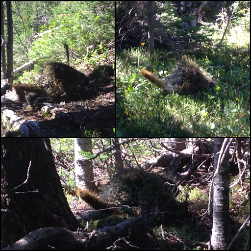 We did run into a big porcupine that waddled right with us for awhile. I’ve never seen one for such a long time so close up! It was fast and neither of us could get a clear photo with all the brush, so here’s the best ones.