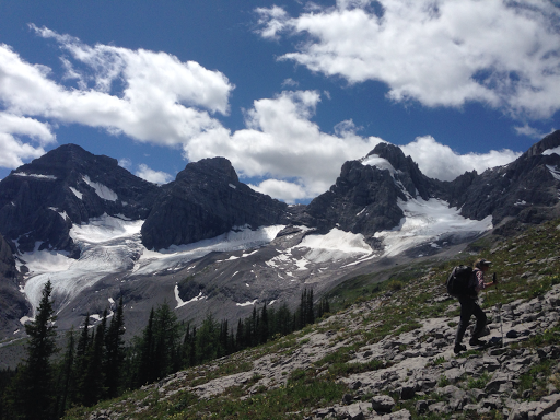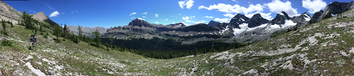 Oh man, what a day! So much happened today that it felt like four days in one. We decided to do the Coral Pass alternate. It parallels the GDT and adds about 9mi/14km to the leg. What we miss is a lot of dirt road walking. What we get is an opportunity to do some cross country stuff and go over a scenic pass. It is much more challenging and time consuming, but that’s what we’re out here for and we hoped it would be worth the effort. This alternate is mentioned in the guidebook, but we could not find a GDTer that’s been able to do it yet because it requires the perfect weather and conditions window. As we’ve now learned, this area from Coleman to Banff is prone to rain and storms this time of the year. We found out yesterday that today would be clear and decided to go for it! We started the first couple miles/kilometers of the Coral Pass alternate last night and were happy with how we were set up. We wanted to be able to relax and take in the day and had plenty of time…we thought.