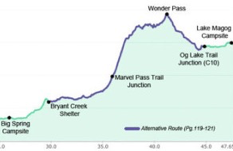 Daily Distance: 10.5mi/16.9km + 5.8mi/9.3km(off trail)=26.2mi/16.3km
