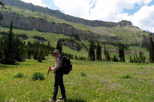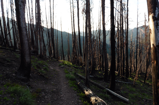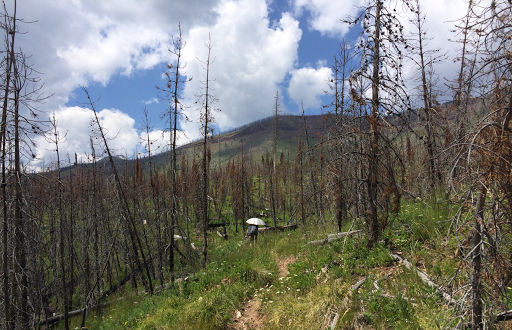 After a couple hours in that exposed burn area, it got dense and wooded again, but this time with a lot of spiderwebs. We saw our only two people of the day, which was two guys and a dog doing a few days to see the Chinese Wall. The odd thing is that we were all hiking the same direction and we thought we had finished the wall. Apparently, we didn’t. The views and wildflowers were great!