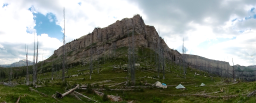 We looked at the maps and decided to try for a saddle where we could camp high, hope for a breeze to keep bugs away, and get a nice view for the night. We found a great spot and are just loving having this all to ourselves out here. Pretty incredible!