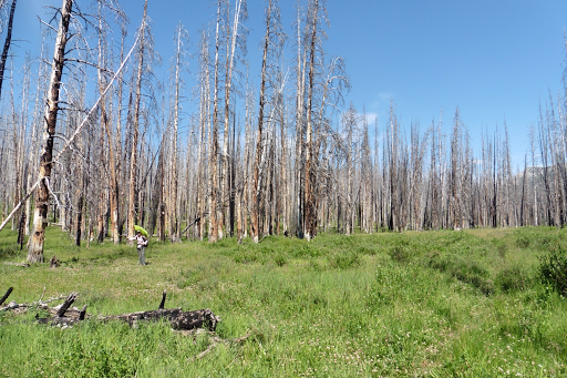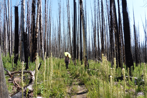 The last couple of hours, we hiked through some more burn and some slightly high brushy trail.