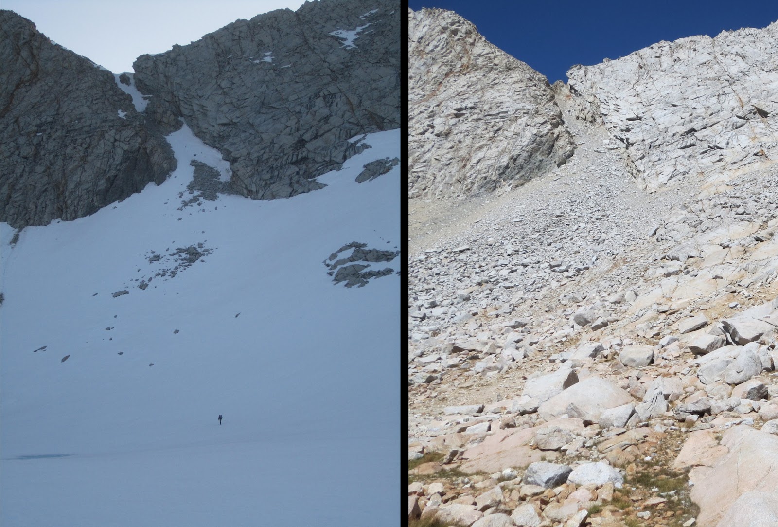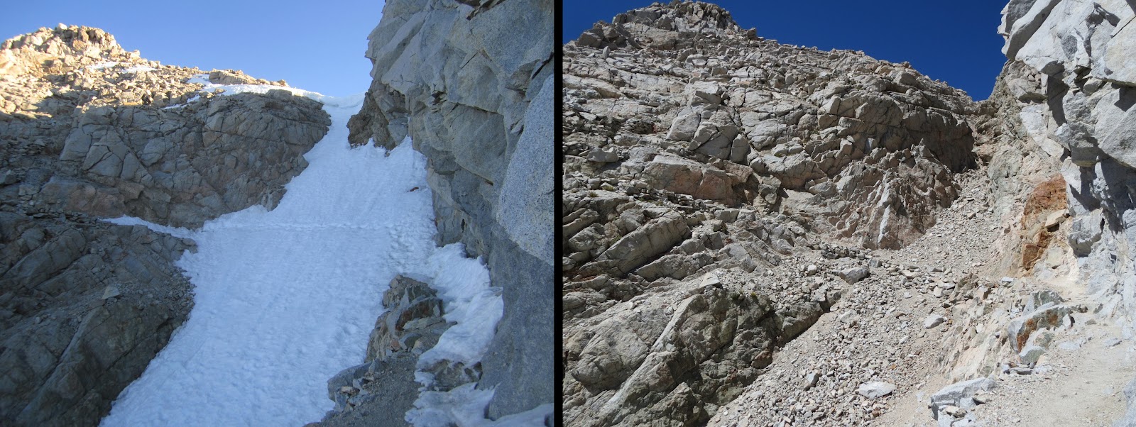 | The frightening snow chute we traversed on Forester Pass. |