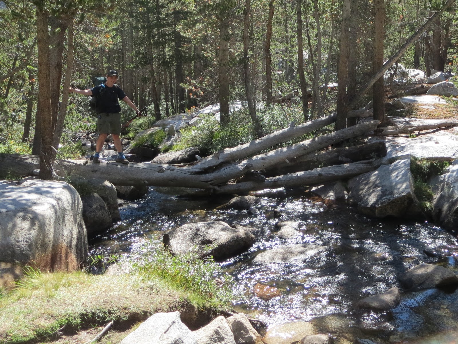| A branch of Bear Creek where I crawled over this angled log in fear. Not fun! |
