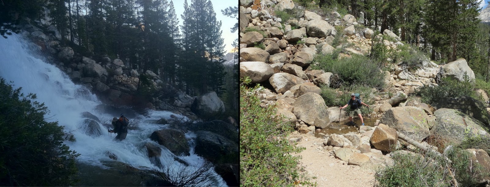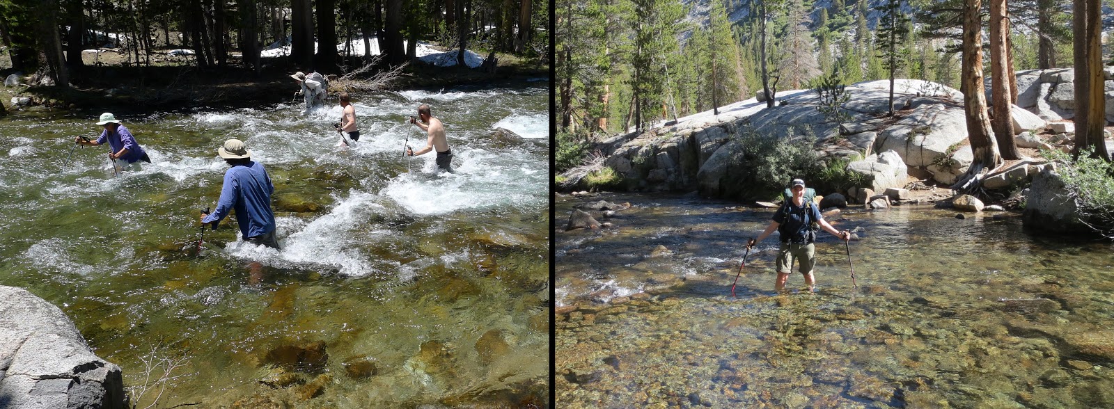 | The Bear Creek crossing was my most frightening! It was higher than my waist and swift. I couldn’t keep my feet down with the current. I was too scared to take a picture, so here is one from my friend Drop-N-Roll who was hiking near me. |