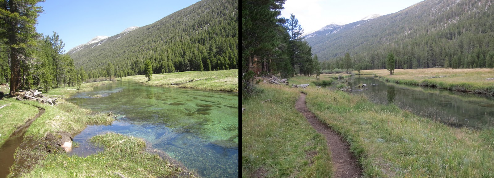 | Lyell Canyon on the way to Tuolumne Meadows. Notice, the trail was full of water last year. |