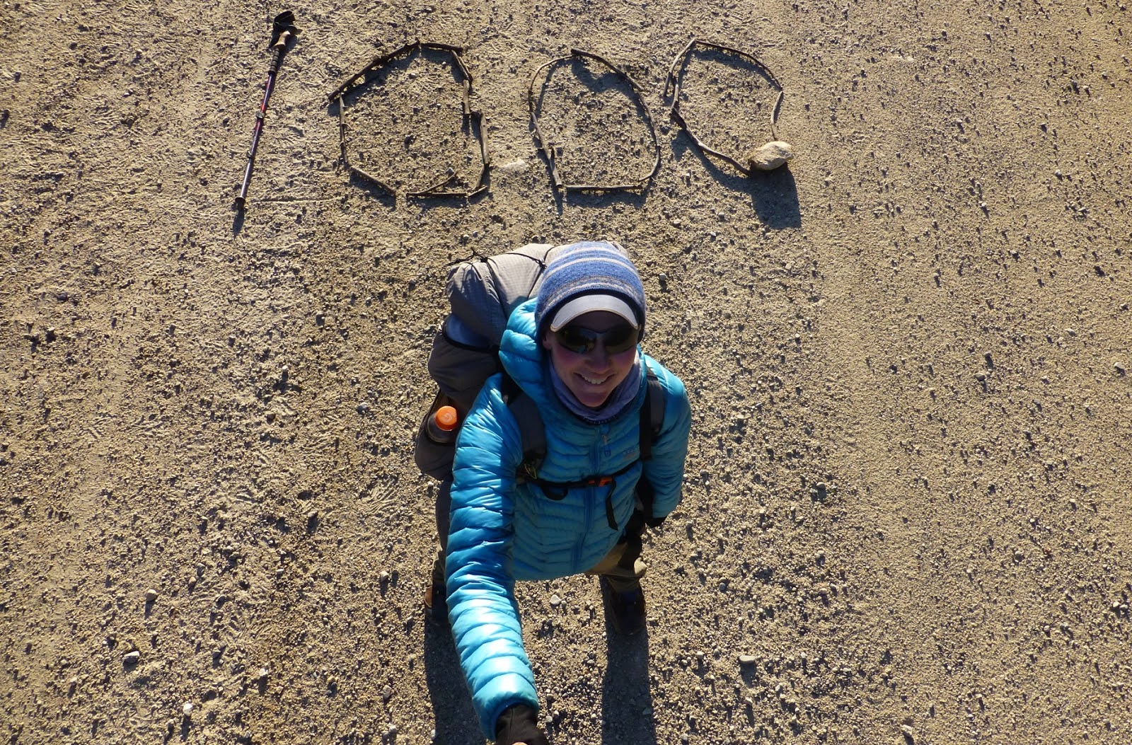 I’m writing this entry as I sit in a lodge lobby at 10:30pm and I’m wiped out, so I’ll do my best, but may be less wordy than usual. Rockin’ and I got hiking by 6:20am this morning and it was a damp COLD outside and was barely 30 degrees. We were excited because we were still in the Collegiate Wilderness and it was a town day as we were 15mi away from Twin Lakes. Less than 2mi after we started, I hit my 1,000mi mark! We were on a road and made a 1,000 out of nearby sticks to celebrate. Yay!