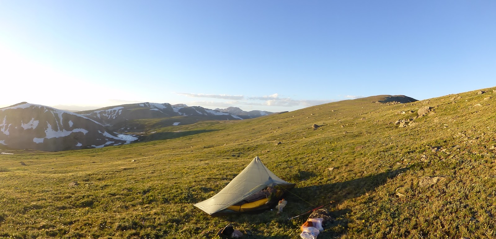 I hiked til 7:15pm and found a flat spot that was sufficient. Downhill from me quite a bit, I can see a car and some people camped, so I guess I’m not that remote. It looks pretty cool up here and there is no wind at all thankfully. Plus, I’m surrounded by little wildflowers and that’s cool.