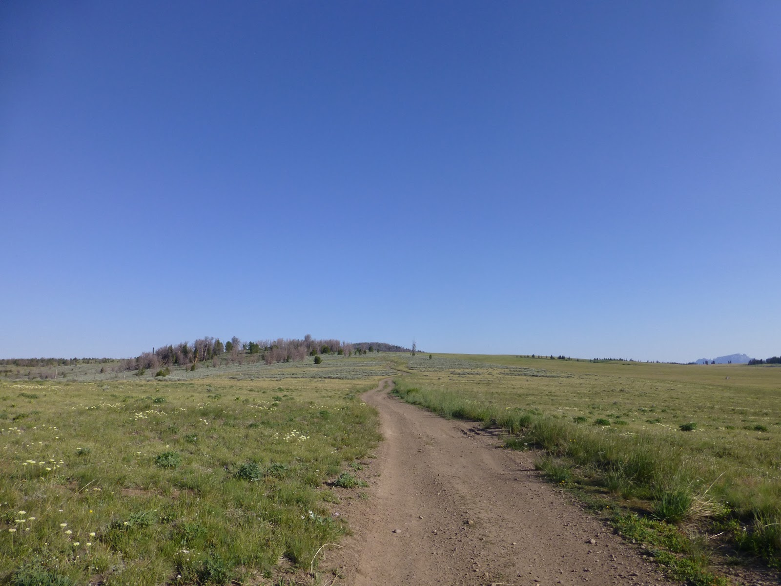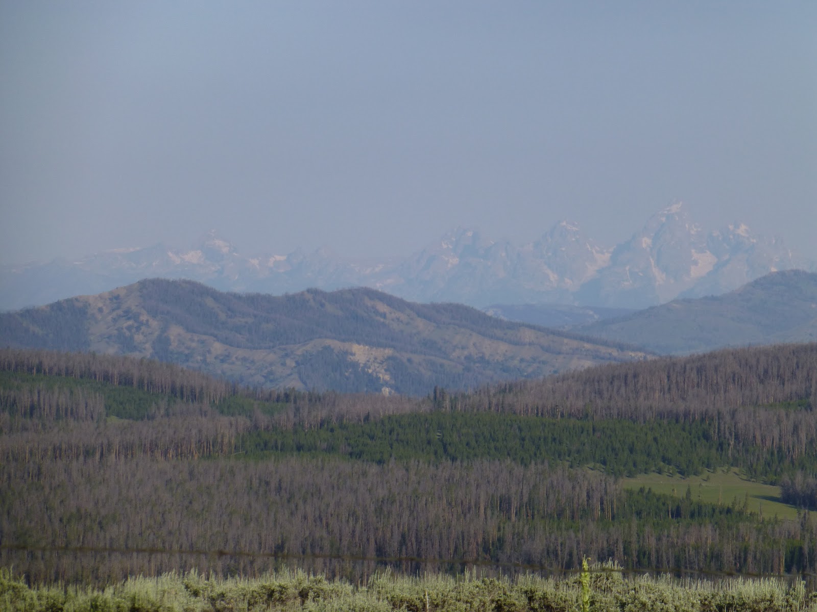 It was hazy this morning, but we could barely make out the Tetons in the distance. The best short backpacking trip I’ve ever taken was to the Tetons last summer on the Teton Crest Trail. There are a few hikers each year who choose to take their own alternate route that will take them through the Tetons, but I won’t be doing that. It’s cool to see them again though.