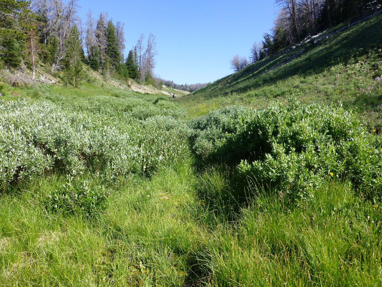 Our last full day on the leg that feels like it will never end! We got going at 7am and I was happy to discover that I had phone service for the first time in three days. I was able to call my sister and find out she’s still preggers and also got to talk to the crew and Rockin’ a bit today. They are now at least 5 days behind us as they chose to stop in more towns the last couple legs and also took a zero in Lander. They are having a great time and that was good to hear. I also got to talk to Mtn Rat and he has decided to push to finish the trail by Aug 18th so he can finish before he needs to go and join his family on vacation. He may end up being the fastest hiker to do the trail this year and that would be really cool! Also, many people have asked me about Balls and Sunshine as we have yet to cross paths this trail. Well, they were ahead of me and then needed to get off trail for a few days last week to attend the funeral for Sunshine’s maternal grandfather. They are now about 3 days behind me, so there is a chance we will overlap in Montana. That’s all the updates I have for now. The next herd of hikers that we have yet to overlap with is in Dubois now and will probably leave just as we are arriving, so maybe we’ll meet them further north.