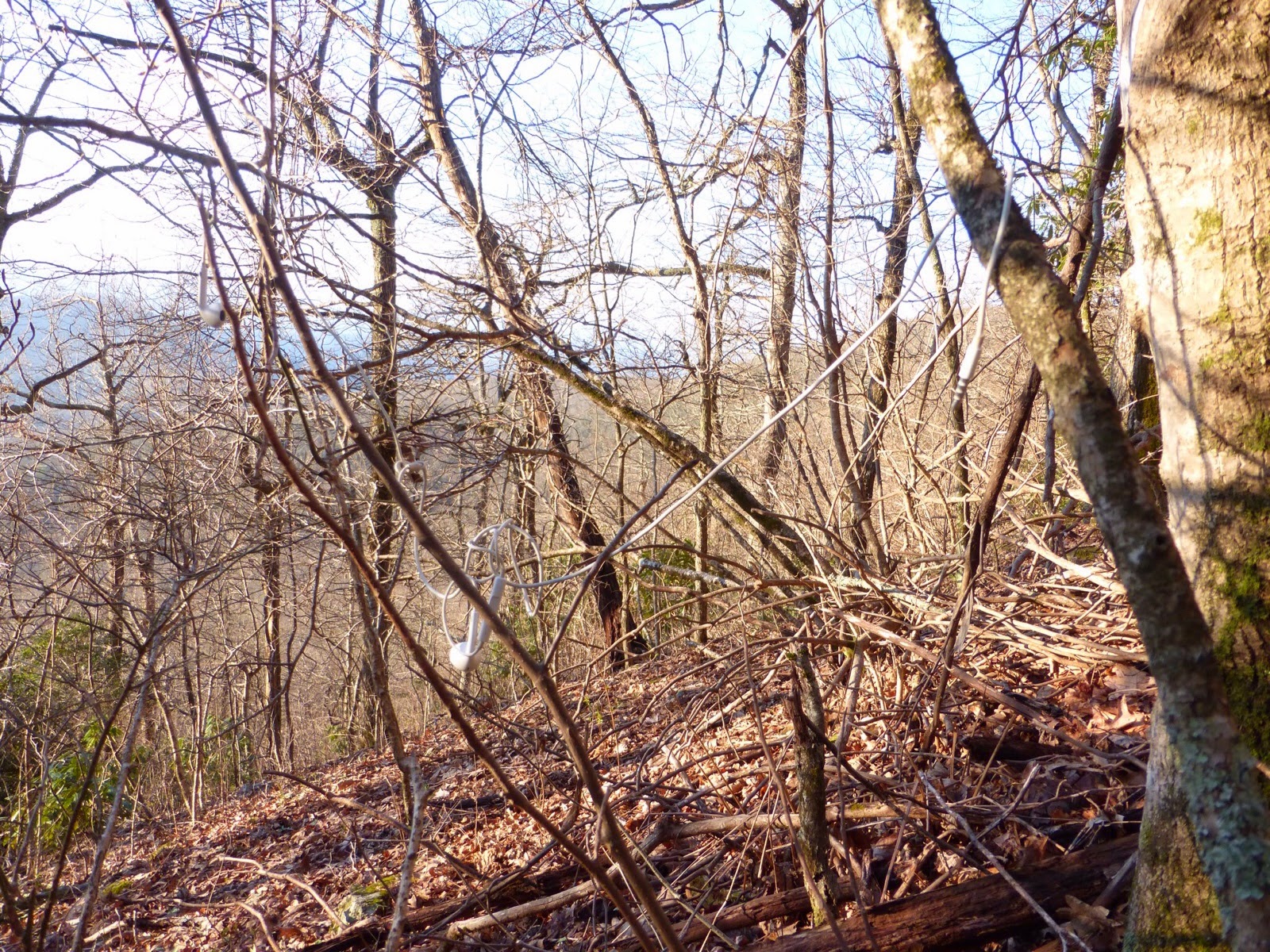 It was my first time camping near a shelter. What I didn’t think about was how many people I’d be around as I got going this morning a bit late. Just walking past all the tents this morning I stopped to say hi to some as I passed by. I like to hike alone in the morning and I need to be more aware of that next time I decided to tent near a shelter. Everyone is really nice though and it was a nice morning. I started out with about 30mins to myself and was excited to cruise to town with some music. As I was hiking down a muddy rocky section, I was untangling my headphones when I slipped. I saved the fall by waving my arms like an idiot and then was relieved that I didn’t fall completely. Then I wondered how I slipped in the first place and remembered I had my headphones in my hand. I looked everywhere for them and after five minutes I finally found them…hanging in a tree! I’m such a moron…close call, but no lost headphones, whew! Look how hard they were to spot! Once again, I know you all are laughing…Well, there’s more to come…