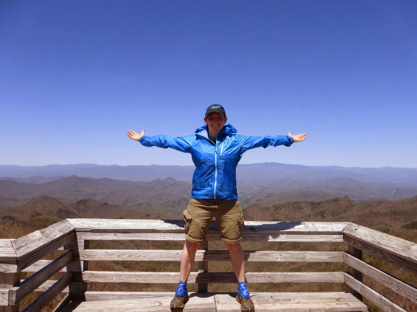 I listened to more of The Fault In Our Stars as the trail dipped down for awhile and then back up to Wesser Bald where there was an observation tower and I happily ate my lunch. Here is the view from the tower.