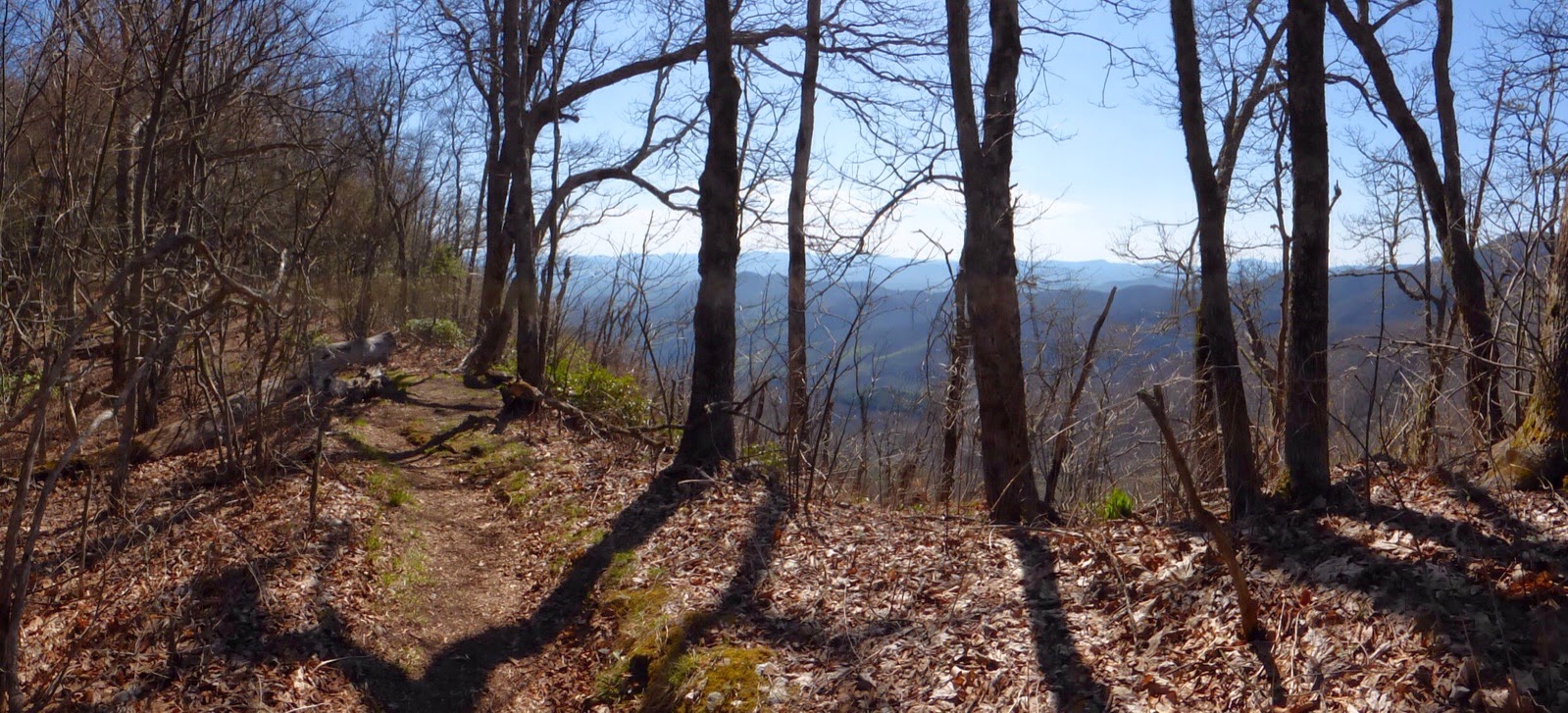 The skies were clear, but it was hazy. I was glad it was clear because today was packed with views as the trail stayed fairly high on a ridge and hit many viewpoints. Even while the trail wound in the woods, the views could be seen through the bare trees.