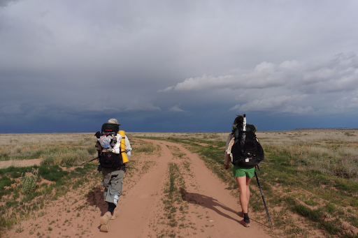 When we woke up this morning, we knew we had a shot at making it to town, but we weren’t sure how the miles would go. It would be over 25mi and we weren’t sure that we wanted to go into town that late and waste a hotel stay on a short overnight. We are a half day behind our intended schedule and planned to get into town earlier today to get a full 24hr rest before heading out on the final leg tomorrow afternoon. The clouds were threatening again and that also added an unknown factor to today…so we walked. In the first hour or so, Katherine caught up to us and we all overlapped until the water source at lunch.