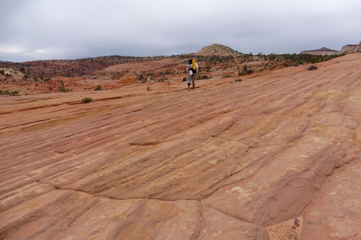 Soon after we got up Fat Man’s Misery, we were officially in Zion! I immediately loved it. 360 degree views of colorful slick rock spanned on forever. I really enjoyed the next hour or more of hiking and it was one of my favorite stretches on the Hayduke. Like most of the Hayduke, the pictures don’t do it justice. The overcast skies really helped.