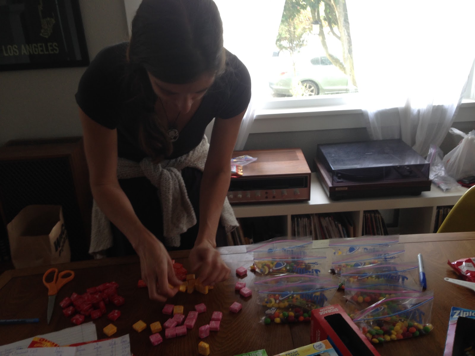 I mentioned that I was fortunate to get to see some of my friends while I was in town. What was even better was that they were able to help me with some of the resupply stuff too. My friend Jennifer (yes, the one that joined me for a section of the PCT in 2011) luckily really enjoys the resupply aspect of planning and she helped me with both the Hayduke and GDT resupplies. Here she is voluntarily making the effort to portion out my Starburts/Skittles bags so I have the equal number of flavors in each bag…Now that’s a quality friend! You rock Jennifer!