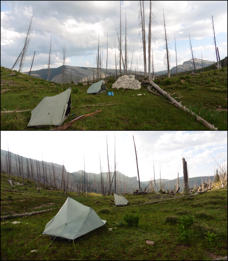 We looked at the maps and decided to try for a saddle where we could camp high, hope for a breeze to keep bugs away, and get a nice view for the night. We found a great spot and are just loving having this all to ourselves out here. Pretty incredible!
