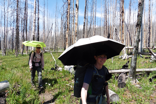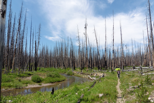The last couple of hours, we hiked through some more burn and some slightly high brushy trail.