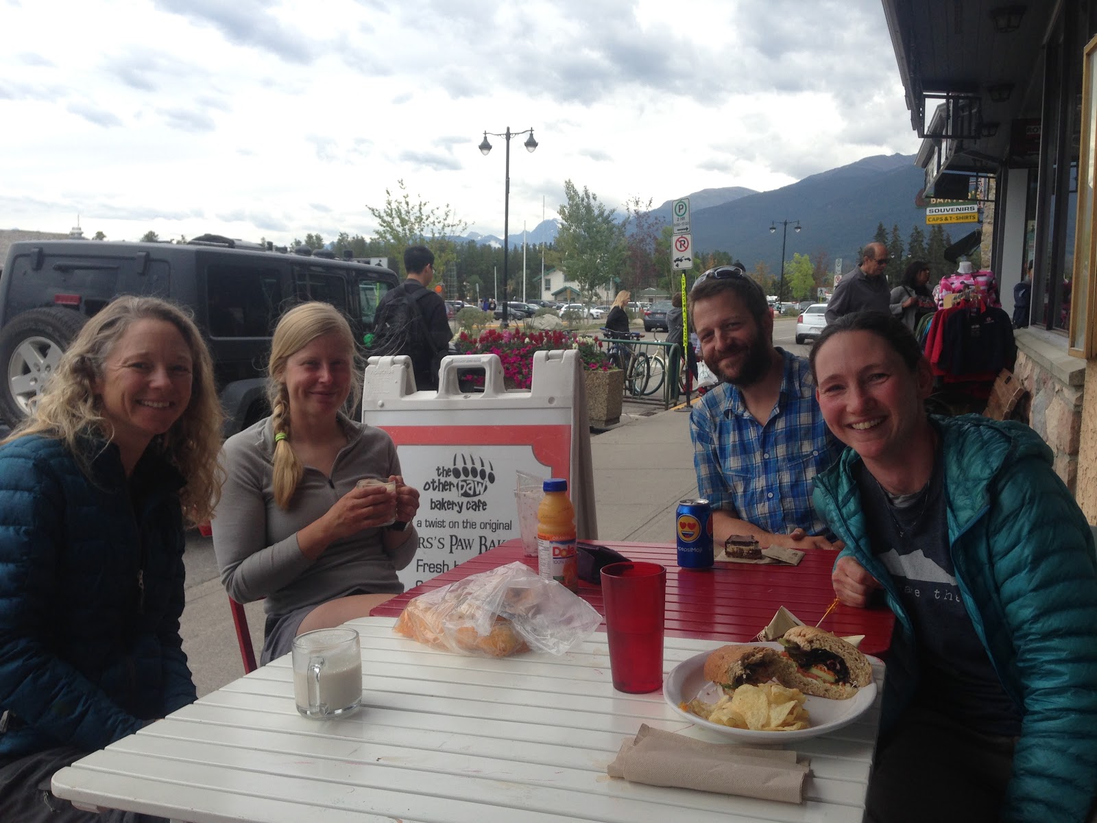 My one photo today is that we did get out and meet Gian and Laura at the popular bakery shop called The Other Bear’s Paw Bakery (down the street from the Bear’s Paw Bakery). Good to see them again. Their hike will finish at the common terminus of Mt Robson in four days and we will most likely all reunite there to congratulate them on completing their hike.