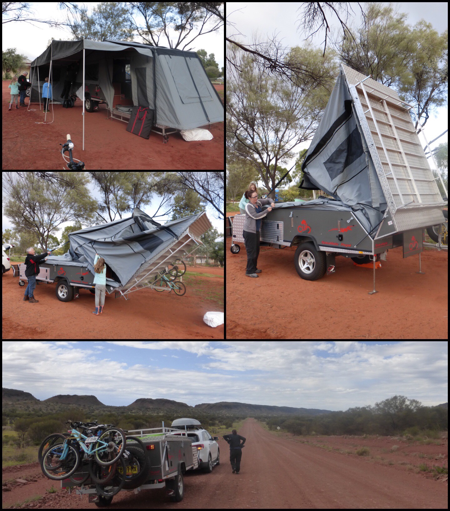 The parents, Mandy and Joel have quite the full tour of Australia mapped out. They are taking the Mereenie loop to Alice Springs, which is a permit only (Aboriginal land) road that requires a vehicle that can handle a rougher road. The road is mostly hard packed sand/clay. It has a corrugated roadbed that makes for lower speed. Basically, it’s a way to drive parallel to the Larapinta and still stop off to day hike or see the main sites. We got started just after 9am after a couple hours of packing up. It was cool to see how their large pop out trailer folded back together.