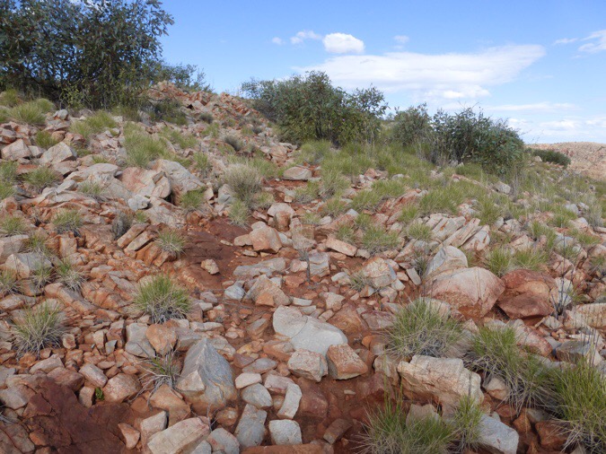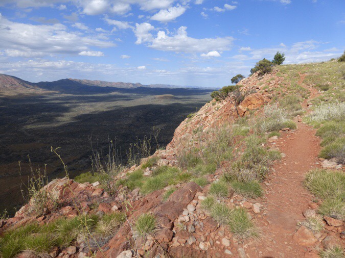 I hustled down best I could but the rocks were even worse and terrain even steeper, so it was slow going. There is a lot of this to be expected on the Larapinta. It’s a tough hike and will give me a good challenge for sure.