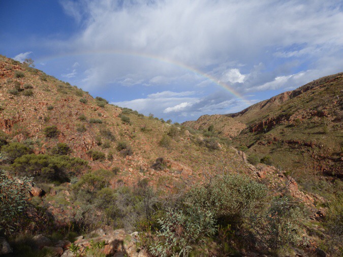 Just as I was swearing the trail and greatly parched, I looked up to see an even grander rainbow! Yep, I’ve got your number Larapinta. I see what you’re doing.