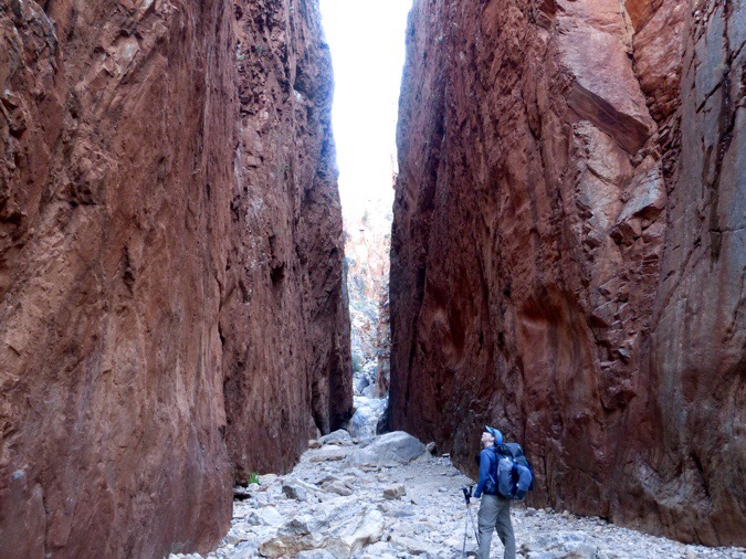 Once I did get to hiking just after 7:30am, my body was slow to warm up. It was either from all the adrenaline yesterday or maybe just the cumulative build-up of a full week of pretty tough hiking. I did the quick side trip to see Standley Chasm. It is packed with tourists midday when the sunlight lights up the tall red walls. I had it all to myself and it reminded me of the thin gorges I went through on the Hayduke last year.