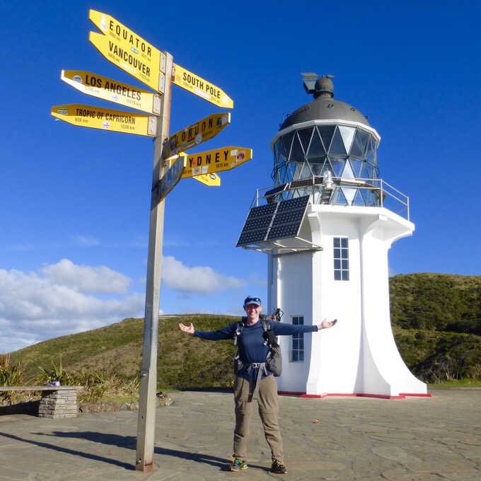 I walked to the end of town a good 15mins and started hitching the 68mi/110km to Cape Reinga at 3:30pm. It took me three hitches and 1hr 15mins to get halfway to Cape Reinga. Everyone is super nice. I got the hitches from locals on their way home from work or fishing. They knew about the trail and were used to having backpackers trying to hitch that road to get to the start. It was approaching 5pm and I was at a small stop with a local restaurant and a camp park nearby. I asked an older couple leaving the restaurant and they immediately said no seeming a bit surprised. I headed to the corner to hitch and was contemplating just camping and starting again in the morning. Then a few minutes later, the older couple came up and offered me a ride admitting that they were headed to Cape Reinga. Score!I was at the Cape Reinga parking about 6pm and there were a handful of cars there. It appears that tourists head out for sunset. When we were a solid 5mi/9km out, we passed what may have been that same couple with the Gossamer Gear packs. I tried to get the couple driving me to pick them up as well, but they weren’t interested. I felt bad as the couple seemed to be walking, and in a bind with few cars heading out, and were pushing it with few people heading out that late. Two of the guys that gave me a ride earlier mentioned a formal DOC (Dept of Conservation) campsite on a side road before the lighthouse. We tried to go there, but it was much too far, so I figured I had plenty to time to find a campsite if I went ahead and started since it would be light out well after 8pm. I got someone to snap some start photos and was shocked it was all happening already!