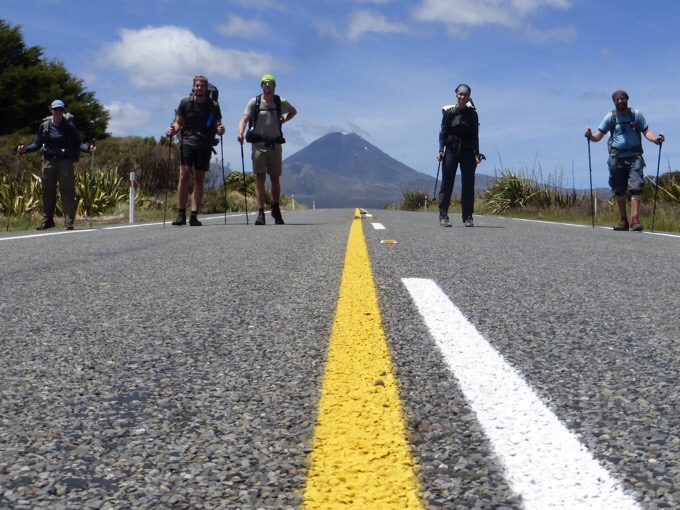 We had a relaxed day with lunch by a stream and then a 4mi/6km highway walk to the Four Square (convenient mart) at National Park. Great views again of all the mountains as we walked the road. Mt Doom was behind us as we walked the highway.When we got to the Four Square around 3pm, we each grabbed a bit more food for tomorrow and filled up our water capacity since there isn’t any water where we’ll camp tonight and for most of the Crossing tomorrow. We headed out to the corner to hitch and immediately got two cars to pull over. The first one could only take four, so I volunteered to stay back because I had service there and could get things done while I hitched. Well, the next car that drove up, took me and we all drove off at the same time. We got dropped off at the Holiday Park that we stayed at yesterday, and still had a 5mi/7.5km walk to our camp spot at the trailhead. As soon as the cars drove away, I realized my umbrella was missing! Shit! Again!!!