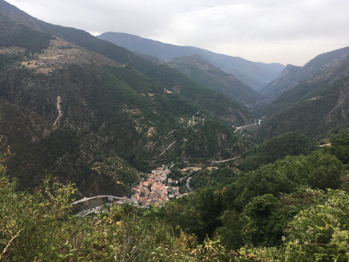 Immediately after that was a steep drop down switchbacks to the much bigger and more modern St Sauveur sur Tinée. I stopped at a bench right on the edge of town by a fountain and ate my lunch. Good strategy as I would have bought something if I went through there hungry.