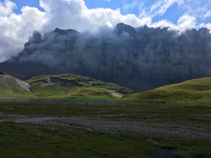 I have to say my favorite part of the day was the lake between the two, Lac d’Anterne. With the fog moving around the mountains and the size and color of the lake, each view as I walked by was awesome. Many people were setting up tents in that area at the end of the day. The beauty and grandness of all the scenery is tough to capture.