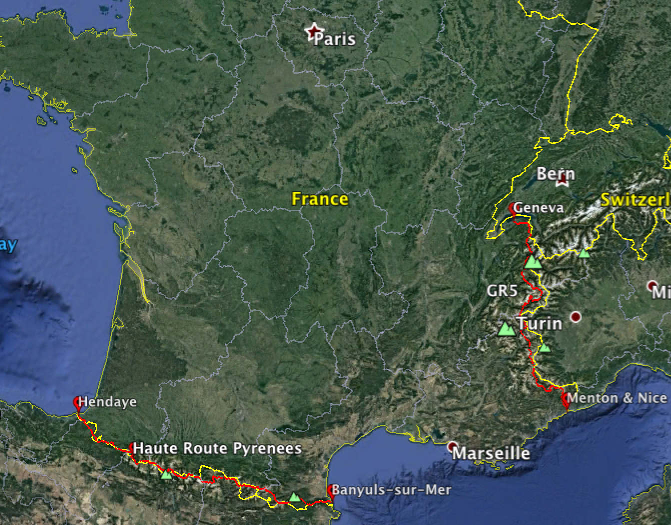 Quite possibly my favorite summer thus far, I hiked in France on the Haute Route Pyrenees and the GR5 (French Alps). The HRP is a ~500mi/800km route that traverses the Pyrenees range, which runs along the border of Spain and France, from the Atlantic to the Mediterranean. The HRP tries to take the highest traverse of the Pyrenees between the more frequently hiked GR11 (in Spain) and the GR10 (in France). The section of the GR5 that most hike is a 400mi/644km trail from Geneva to Nice (or Mention) in the French Alps paralleling the Italy border. It is less remote and not as taxing as the HRP, but is still requires plenty of effort with ample elevation change. Both hikes were a nice balance for my first time hiking in Europe.
