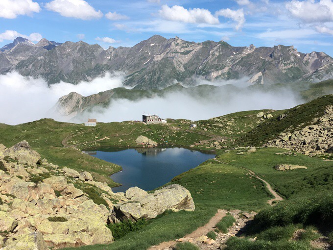 Quite possibly my favorite summer thus far, I hiked in France on the Haute Route Pyrenees and the GR5 (French Alps). The HRP is a ~500mi/800km route that traverses the Pyrenees range, which runs along the border of Spain and France, from the Atlantic to the Mediterranean. The HRP tries to take the highest traverse of the Pyrenees between the more frequently hiked GR11 (in Spain) and the GR10 (in France). The section of the GR5 that most hike is a 400mi/644km trail from Geneva to Nice (or Mention) in the French Alps paralleling the Italy border. It is less remote and not as taxing as the HRP, but is still requires plenty of effort with ample elevation change. Both hikes were a nice balance for my first time hiking in Europe.