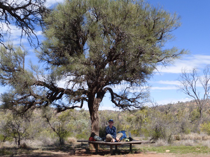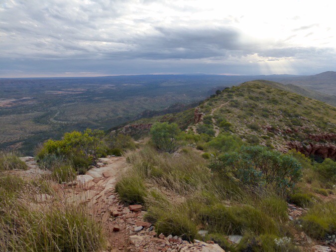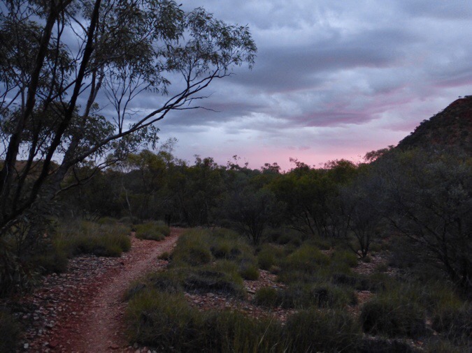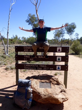 The challenging and remote Larapinta Trail (139mi) runs along the West MacDonnell Ranges in the center of Australia and has become a highly recommended trail in Australia. . This arid area is similar to that experienced in Southwestern United States. The blazed and sometimes off-trail route goes through various landscapes along the range to include rocky ridges, creek beds, plains, and through many gorges. It’s a unique place with little water, so there are tanks along the way that collect rainwater and are filled by trail maintainers. I hiked it eastbound from Redbank Gorge to Alice Springs. It was a unique year in which they had three times their normal rainfall, so I was able to get more greenery, wildflowers, and even experience the Larapinta filled with water after a hard rain.