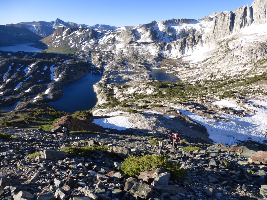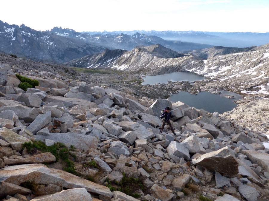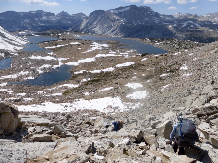Most are familiar with the John Muir Trail in the Sierra Mountains of California. The Sierra High Route is the JMT’s big brother on steroids. I’ve included the JMT on here for reference of where the SHR goes. Note that the SHR is a route, meaning that much of the hike (~100mi) is cross country over talus, boulders, and alpine meadows. The more arduous navigation and hiking pays off in the solitude that is found in such remote places. I hiked with my friends Rockin’ and Why Not. We hiked early season, so there was plenty of snow to contend with still on the passes. The majority of the route is between 10,000-12,000ft. Mileages are significantly lower given the terrain and strenuous elevation gain/loss. Hope you enjoy the journey. This one was pretty grand!
