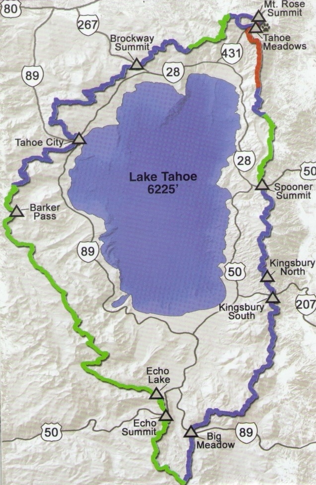 The Tahoe Rim Trail is a beautifully varied trail that loops around Lake Tahoe, which lies along the border of California and Nevada. Although this trail does ago around Lake Tahoe, it is not a lakeshore hike. Much of the hike is in higher elevation up above the lake with grand views and quite varied experiences from dense forest to high alpine hiking. It even overlaps the Pacific Crest Trail for 50mi. This is a highly recommended thru-hike for those seeking anywhere from 1-3wks of hiking. Note that this hike was done between two longer thru hikes, so I was in peak thru-hiking condition. Most people would want to take around 2 weeks to comfortably enjoy this hike.
